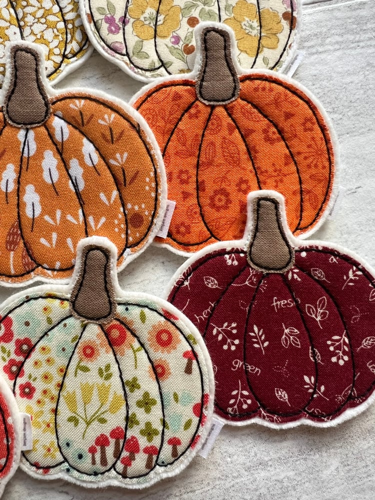 Each decoration is cut from a beautiful fabric collection and free motion machine stitched onto quality wool blend felt.