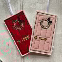 Each decoration is individually handmade. It is cut from a quality fabric and free motion machine stitched onto a felt.