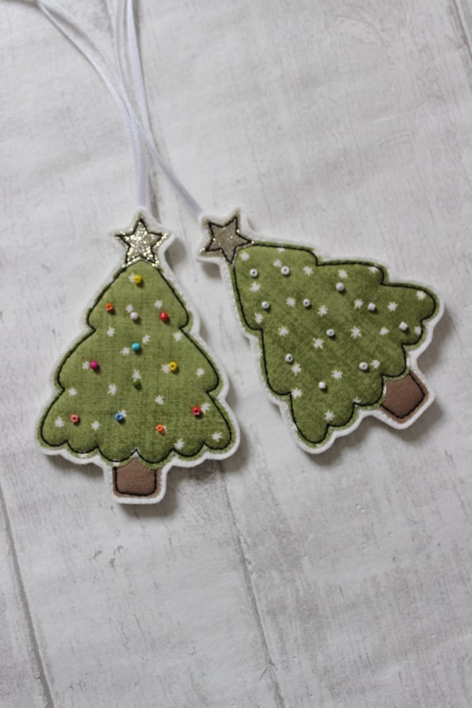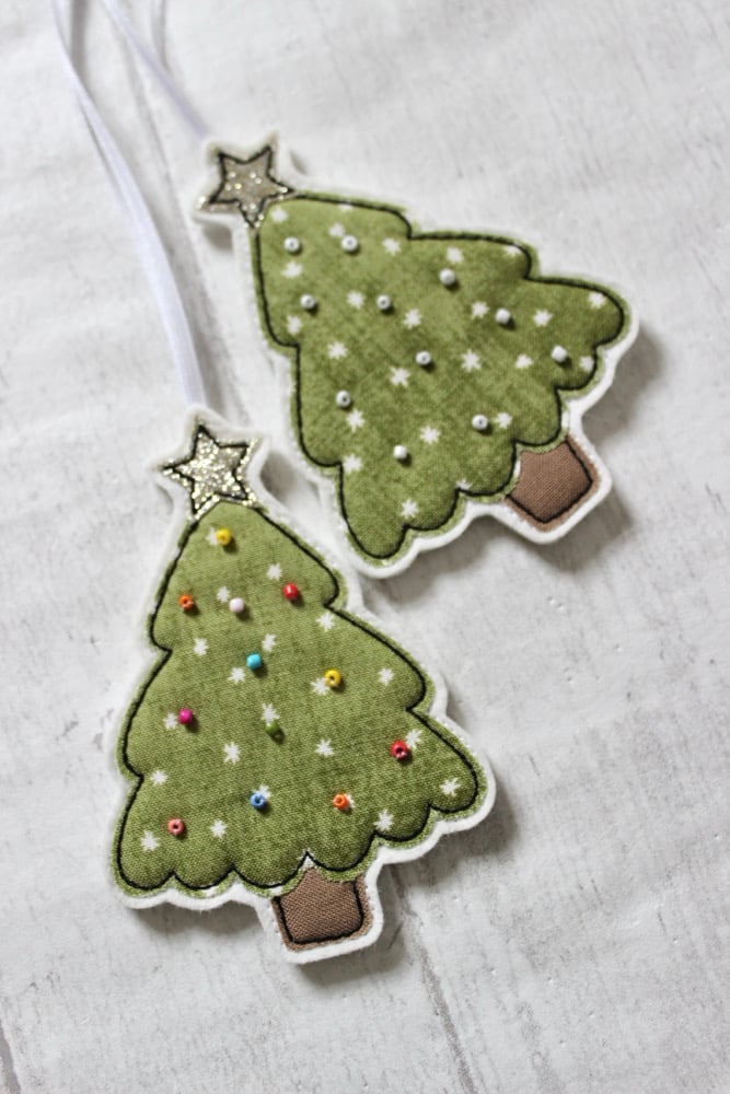 Each decoration is individually handmade. It is cut from a quality fabric and free motion machine stitched onto a felt background.