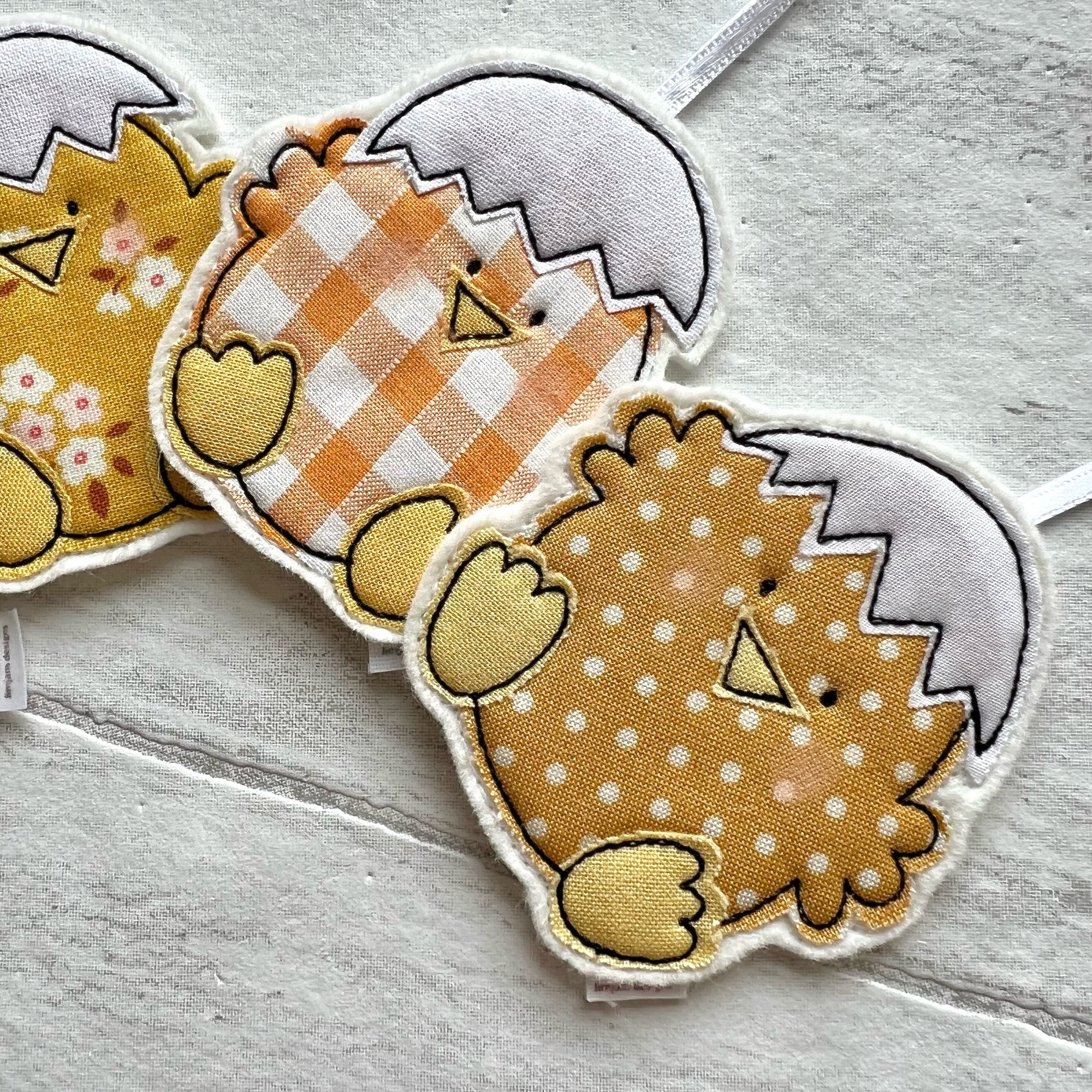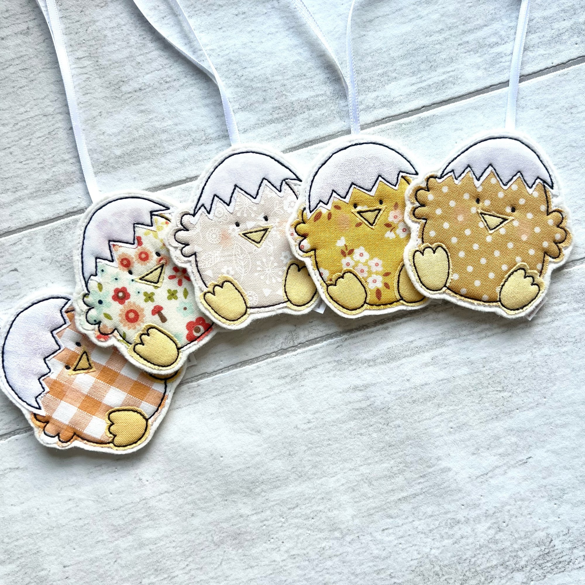 Each decoration is cut from a range of beautiful fabrics and is free motion machine stitched onto quality wool blend felt. They available with a gold initial personalisation. see photo.