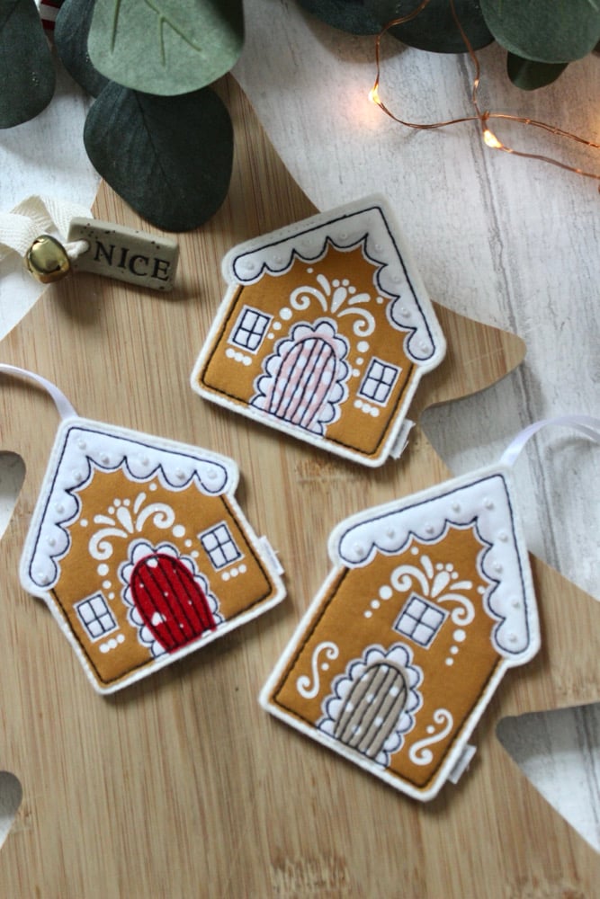 Each decoration is individually handmade. It is cut from a quality fabric and free motion machine stitched onto a felt background.