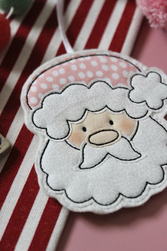 Each decoration is individually handmade. It is cut from a quality fabric and free motion machine stitched onto a felt background.