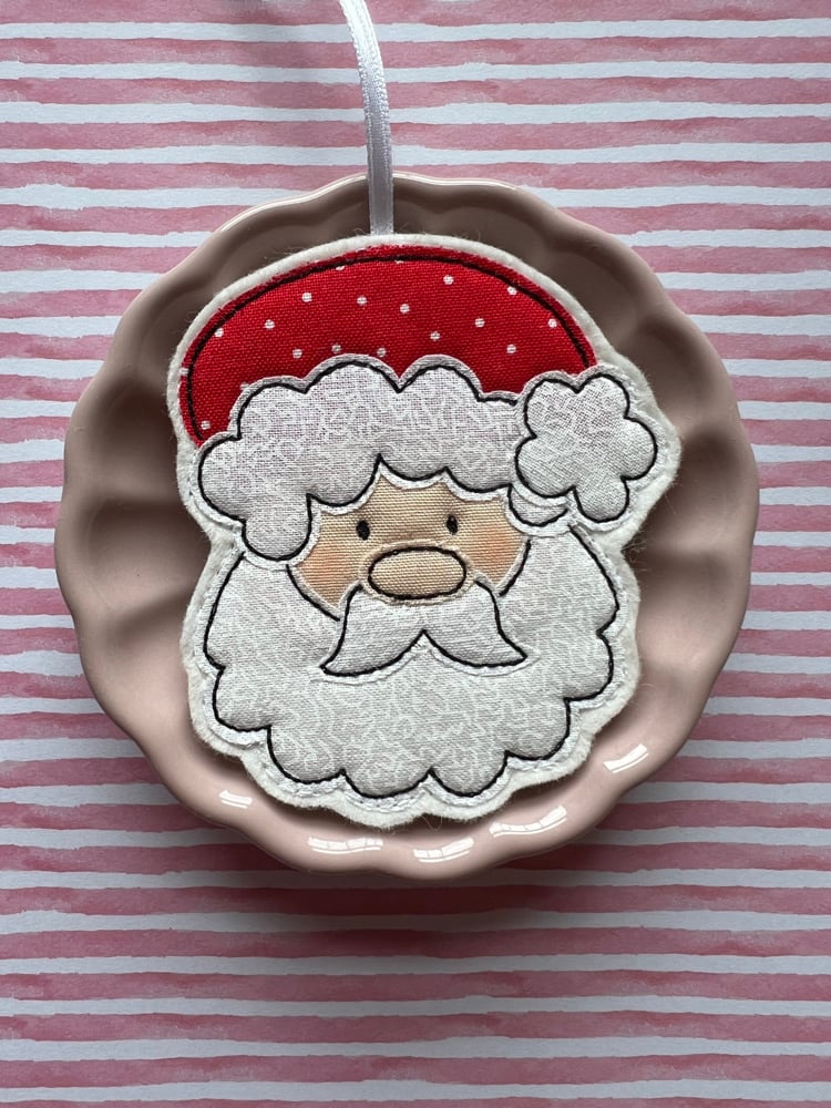 Each decoration is individually handmade. It is cut from a quality fabric and free motion machine stitched onto a felt background.