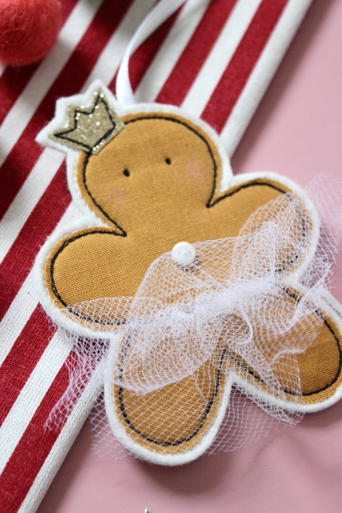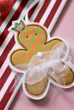 A little tutu gingerbread girl with tulle skirt and gold crown.